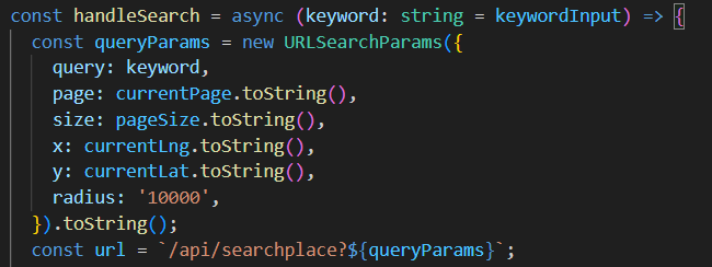 const url = `https://dapi.kakao.com/v2/local/search/keyword?query=${keyword}&page=${currentPage}&size=${pageSize}&x=${currentLng}&y=${currentLat}&radius=${10000}`;
