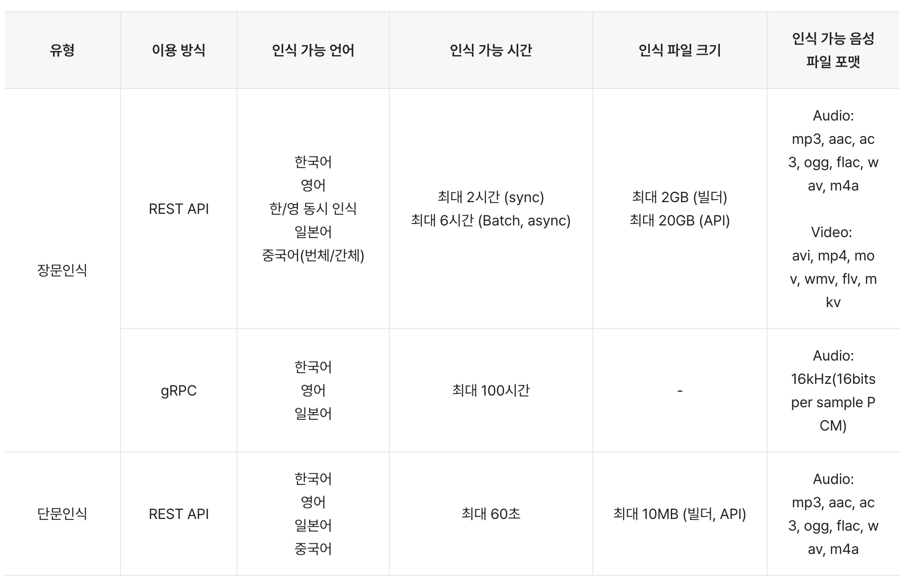 위의 사진을 보면 유형이 장문인식과 단문인식으로 구분되어 있다. REST API를 이용하여 장문인식을 할 경우 무료 6시간까지 인식이 가능했다!(든든하다💪)