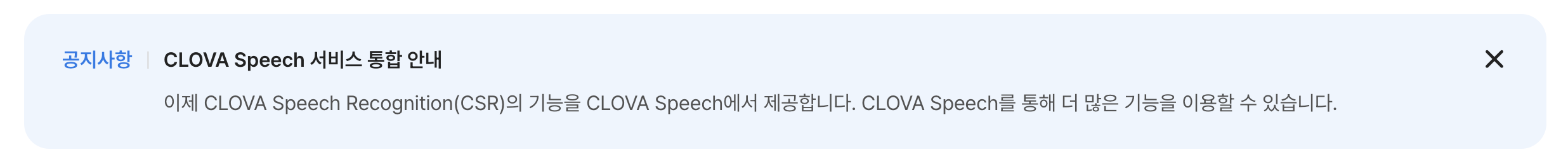 또한 현재 시점을 기준으로 CSR 서비스에 들어가면 아래 사진과 같이 CLOVA Speech와 통합된 것을 볼 수 있었다. 그렇다면 CLOVA Speech는 어떤 기능들을 제공할까?