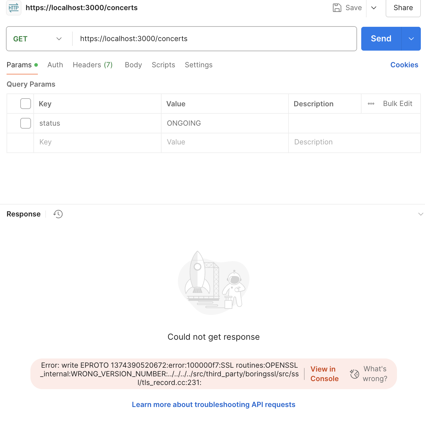 찾아보니까 정말 단순한 이유였는데 localhost 서버 요청을 http가 아닌 https로 설정해서 난 에러였다.