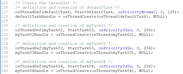 osThreadDef(defaultTask, StartDefaultTask, osPriorityNormal, 0, 128);
