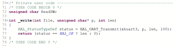 int _write(int file, unsigned char* p, int len)