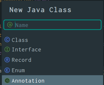 IntelliJ에서 new java class를 선택하면 annotation을 만들 수 있다.