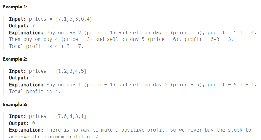앞에서 풀었던 주식 사고 팔기와 비슷하지만, 이 문제는 여러번 사고 팔 수 있기 때문에 최대 이익을 계산하기 위해서는 모두 다 해봐야한다.