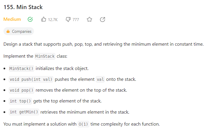 stack에 val를 저장하는 과정에서 (val, min)을 묶어서 set형태로 저장하는 방법이 있다.