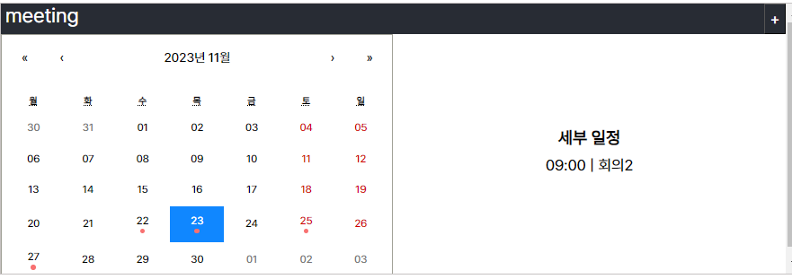 현재 나는 meetings에 저장되어 있는 날짜에 마크를 표시하도록 설정해놓았다.