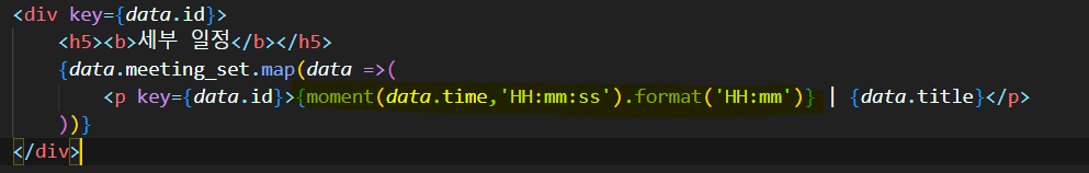 django timefield를 사용할때는 다음과 같은 형식으로 moment.js 를 사용해야한다.