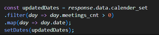 그래서 나는 필터를 사용해서 일정이 1개 이상인 데이터의 date만 담아 리스트를 만들었다.