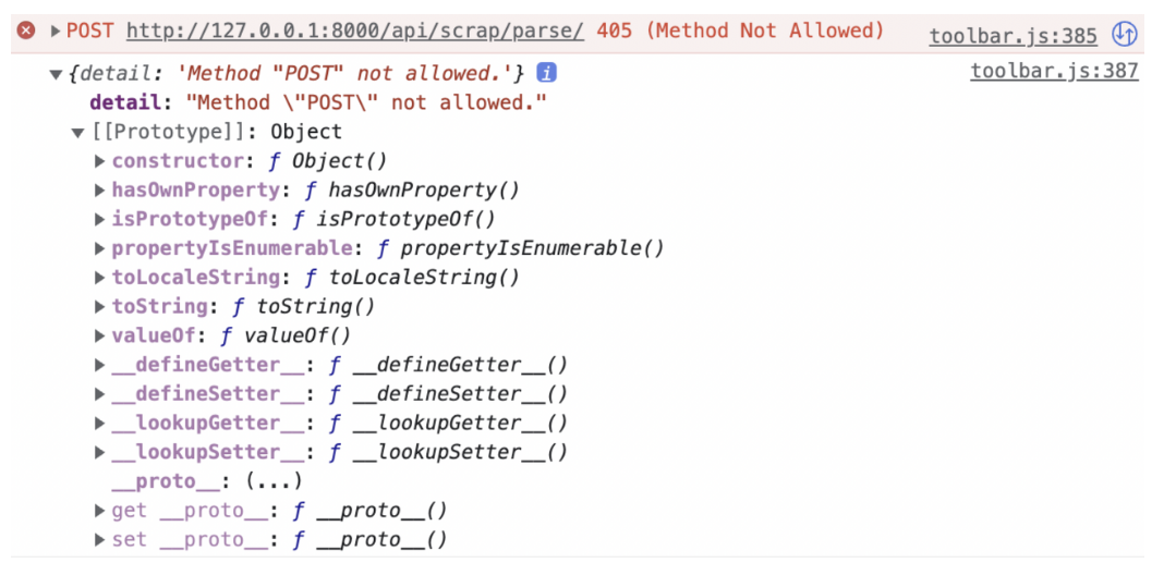 `toolbar.js:363 POST http://127.0.0.1:8000/api/scrap/parse/ 403 (Forbidden)toolbar.js:365`