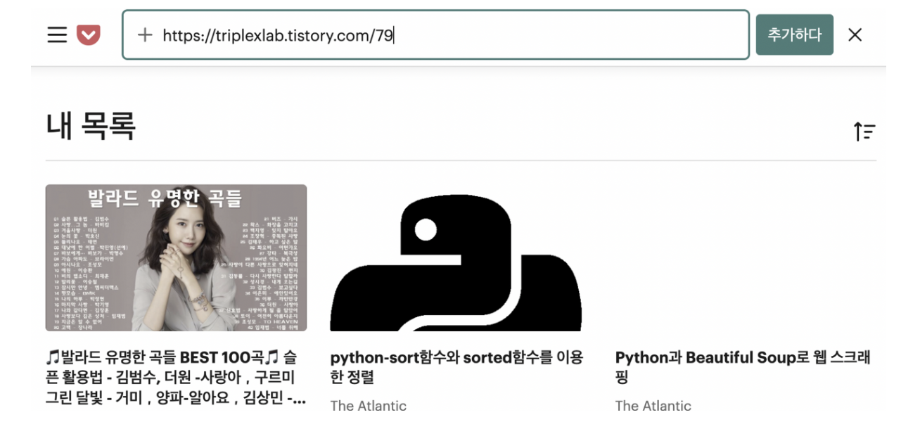 아래와 같이 클라이언트 화면에서 url 입력 후 추가버튼을 클릭 시 이벤트가 발생한다.