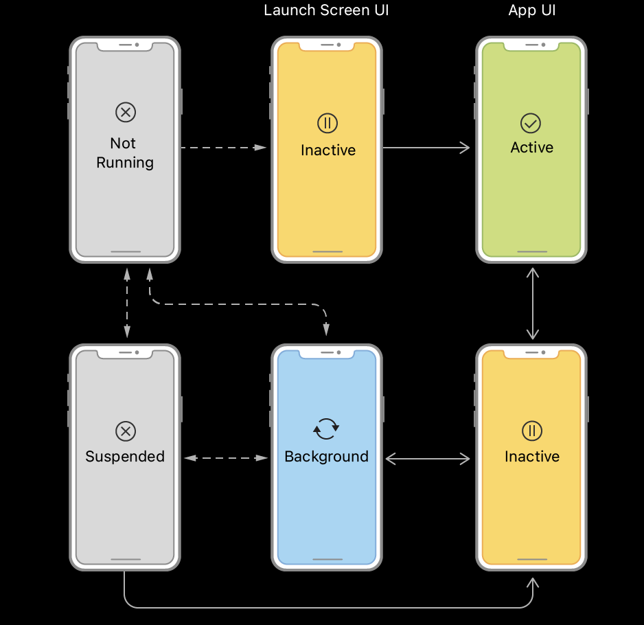 참고(공식문서) : https://developer.apple.com/documentation/uikit/app_and_environment/managing_your_app_s_life_cycle