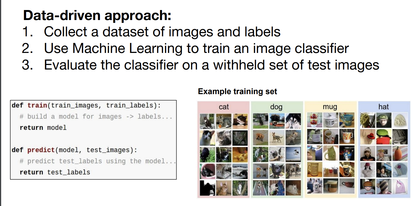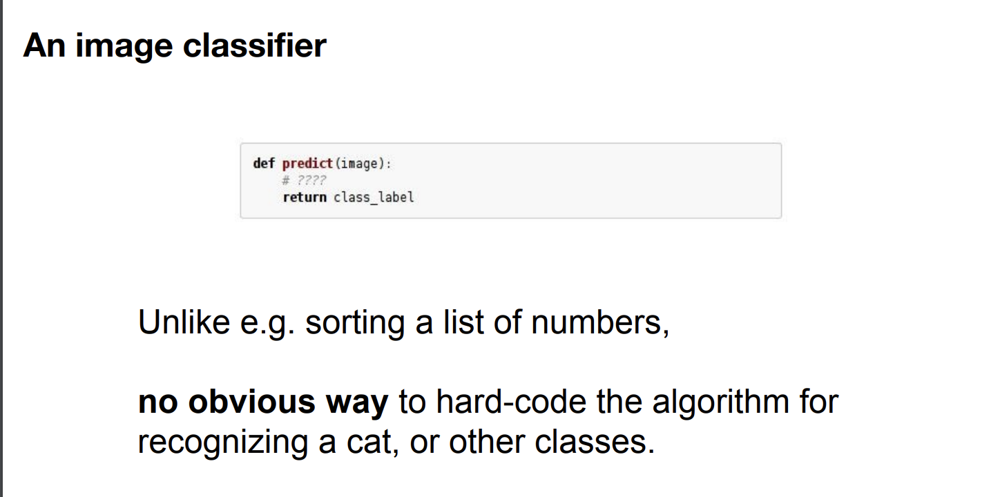 - Image를 분류 하는 데 Sementic gap 이 있다 = 사람이 보는 것과 기계가 보는 것의 차이가 존재한다.