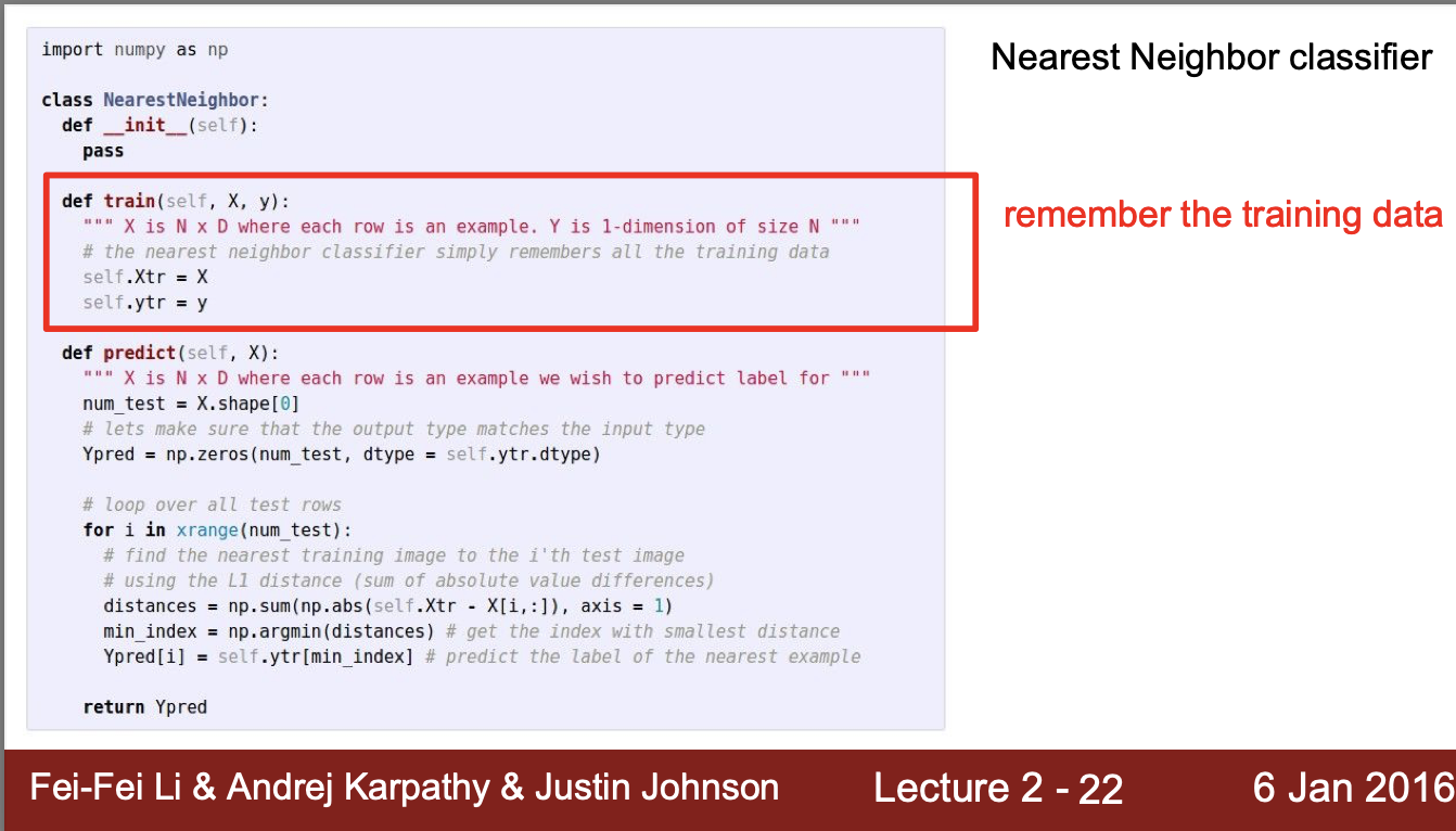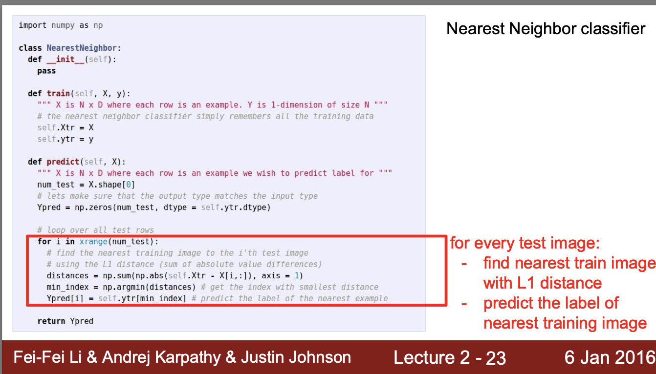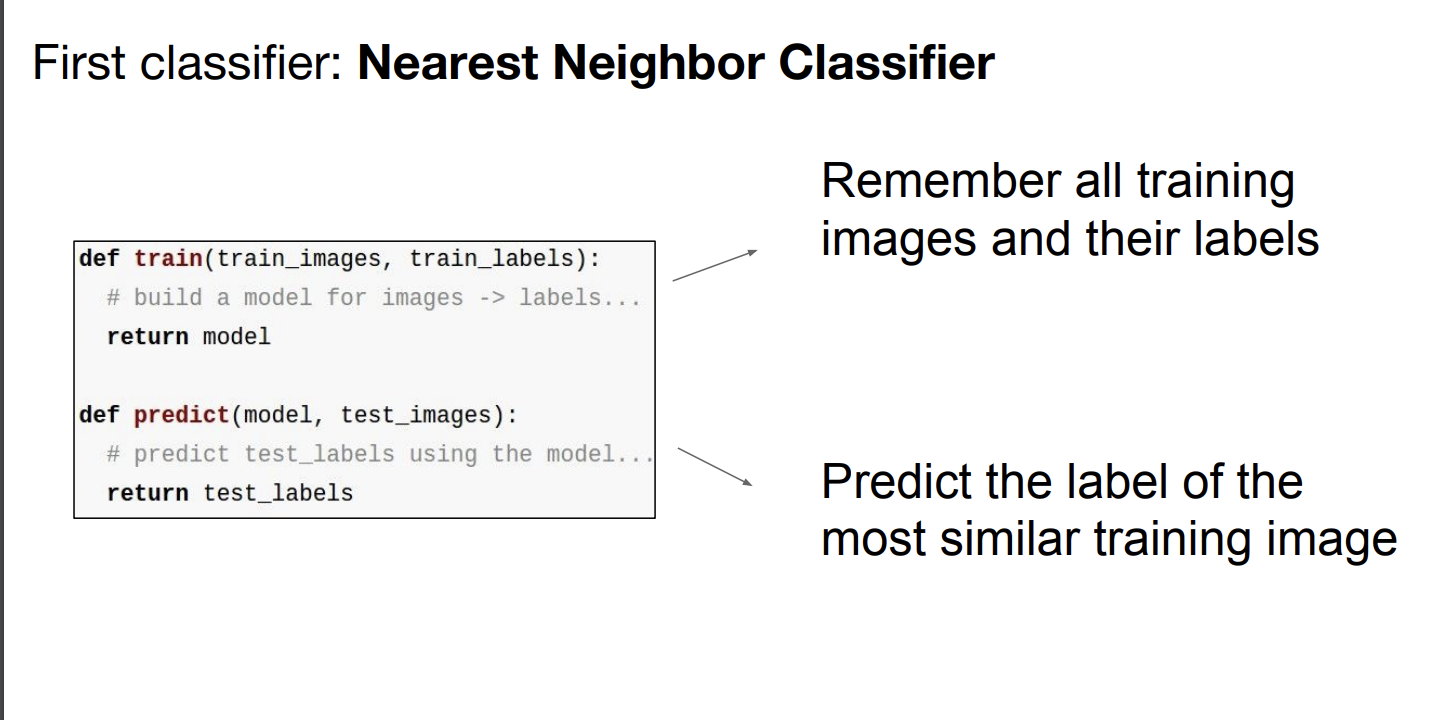 - test image를 모든 train image와 비교 후 가장 비슷한 train image를 test image라고 판단
