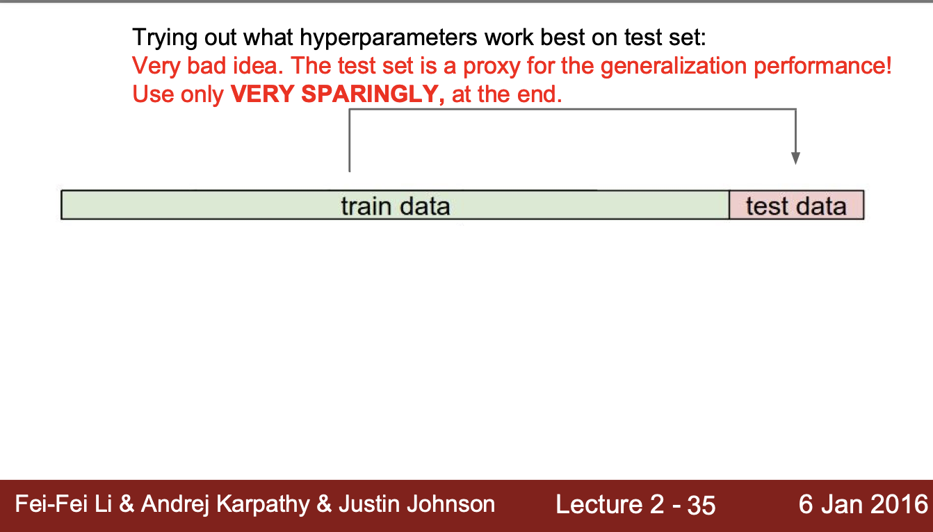 - 기본적으로 train data는 성능평가를 위해 hypermarameter를 지속적으로 tuning하면 부정확한 모델이 될 수 있음