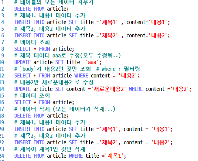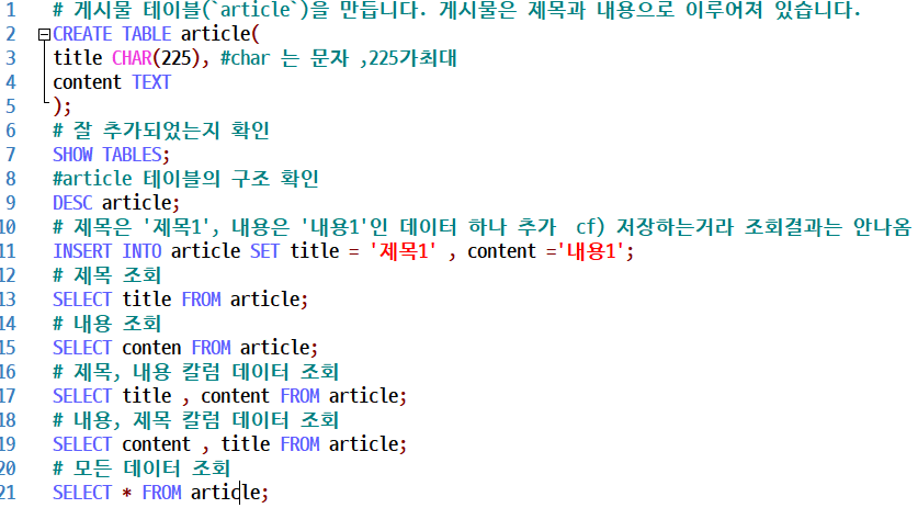 - MySQL : DB(정보 구조화 저장 관리 ,테이블의 집합(폴더))를 다루는 언어라 문법있다.