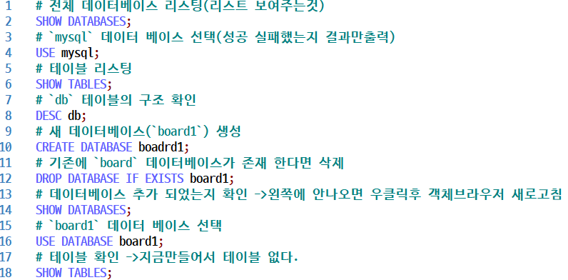 SQL 데이터 베이스 생성 및삭제