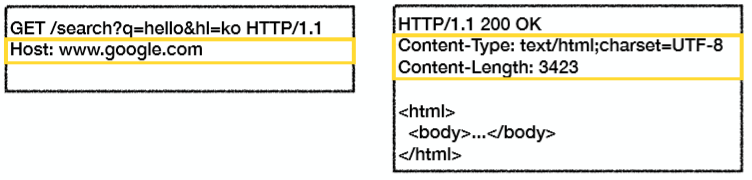- header-field = field-name ":" OWS field-value OWS (OWS:띄어쓰기 허용)