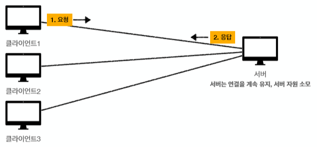 - 클라이언트는 서버에 요청을 보내고, 응답을 대기