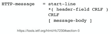 - request-line = method SP(공백) request-target SP HTTP-version CRLF(엔터)