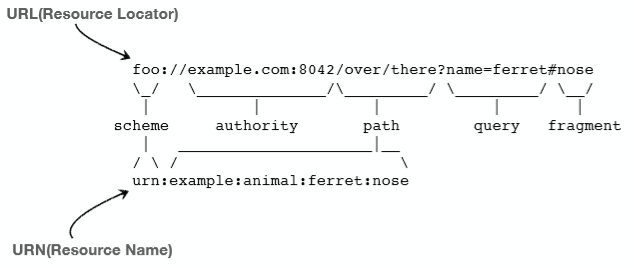 - URI는 로케이터(locator) 이름(name) 또는 둘다 추가로 분류될 수 있음