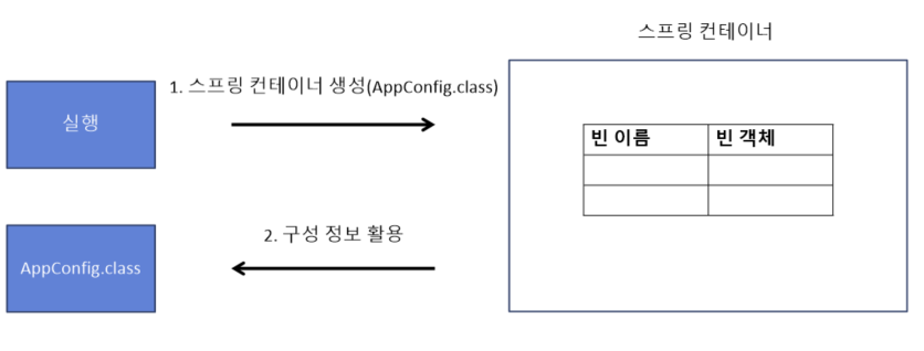 // AppConfig를 통해서 스프링 컨테이너에 빈을 등록한다.