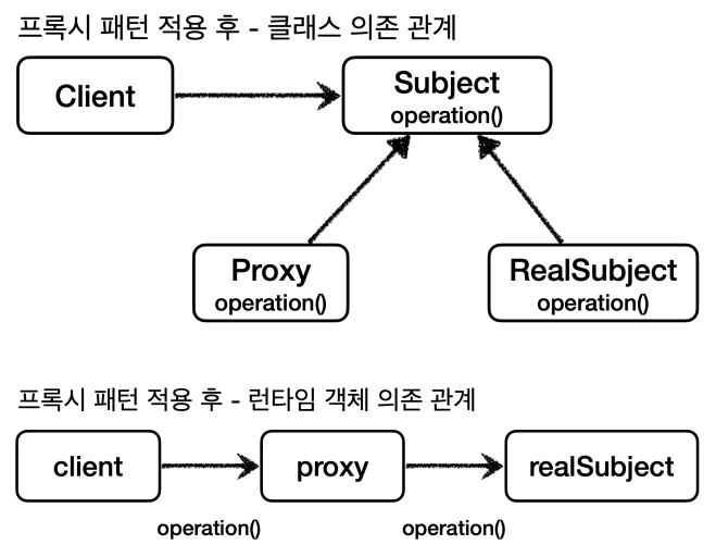 - 클라이언트 코드의 변경 없이 자유롭게 프록시를 넣고 뺄 수 있다. - 실제 클라이언트 입장에서는 프록시 객체가 주입되었는지, 실제 객체가 주입되었는지 알지 못한다