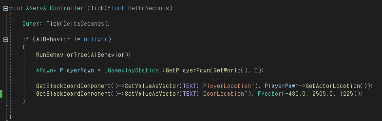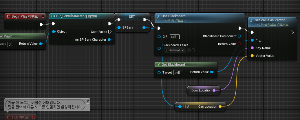 성문은 움직임이 없으니 블랙보드 키값을 벡터로 직접 설정해주었지만 움직이지 않았다.