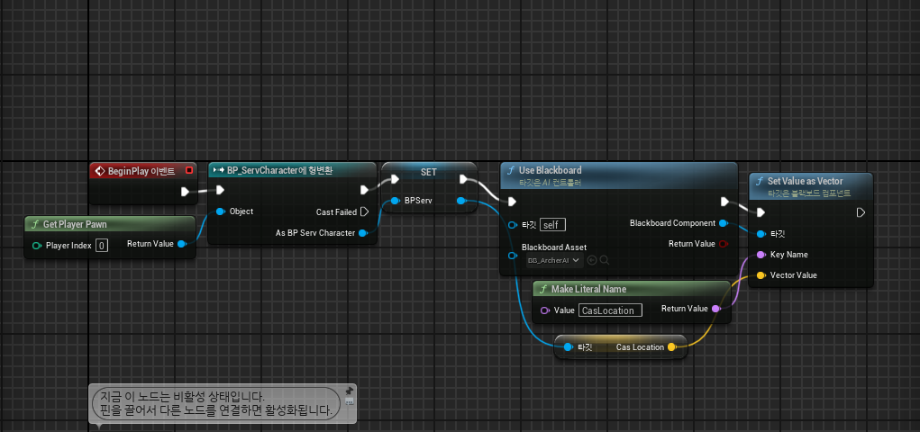 블랙보드 키를 전달하는 과정에서 Key Name을 Make Literal Name으로 변경한 뒤 키는 인식이 됐지만 여전히 궁수는 움직이지 않았다.
