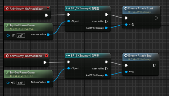 기본 몹을 만들고 궁수를 만드는 과정에서 기본 몹의 블루프린트로만 캐스팅해놓아 다른 몹을 인식하지 못했다.