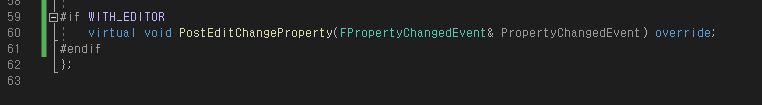 헤더파일에서 선언 시 #if WITH_EDITOR를 사용해 에디터 모드에서만 작동하게 만들어 런타임 중에는 사용하지 않아 최적화가 가능하다.