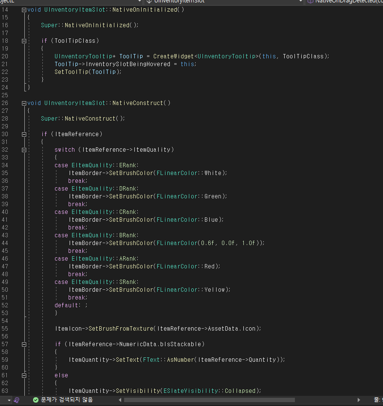 변수 선언만 해준 뒤 초기화 작업은 InventoryItemSlot에서 진행한다.