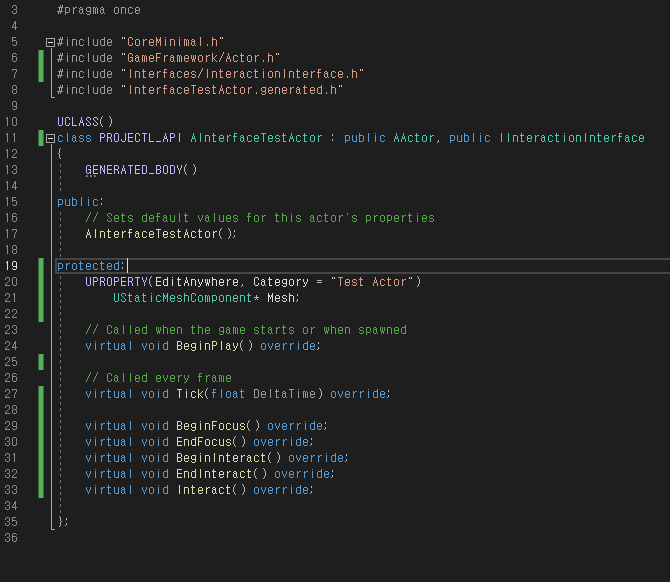 테스트 액터를 생성하여 메쉬와 포커스, 상호작용 선언