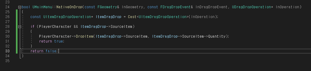 MainMenu의 NativeOnDrop에서 유효성 검사를 실행한 뒤 캐릭터의 DropItem 함수를 호출한다.
