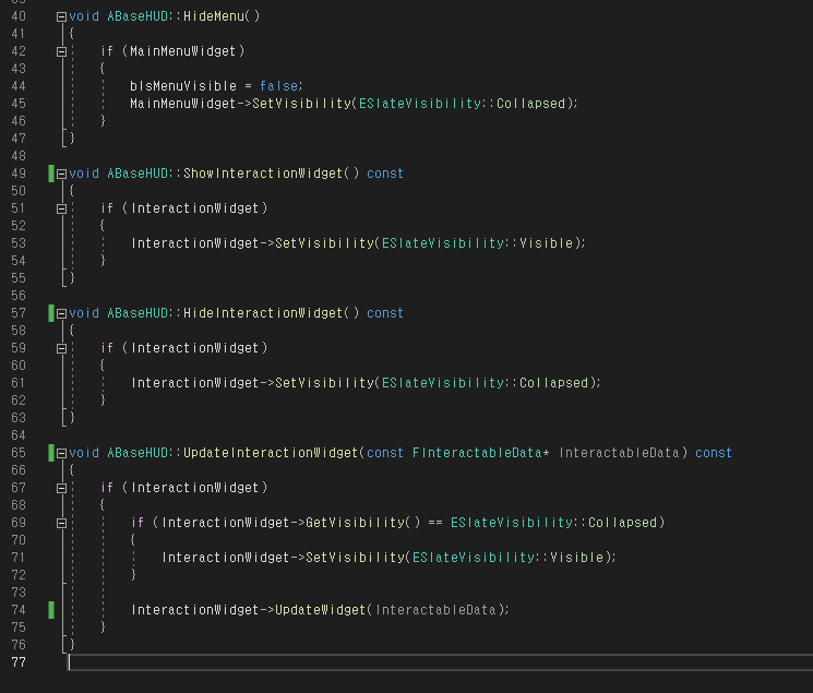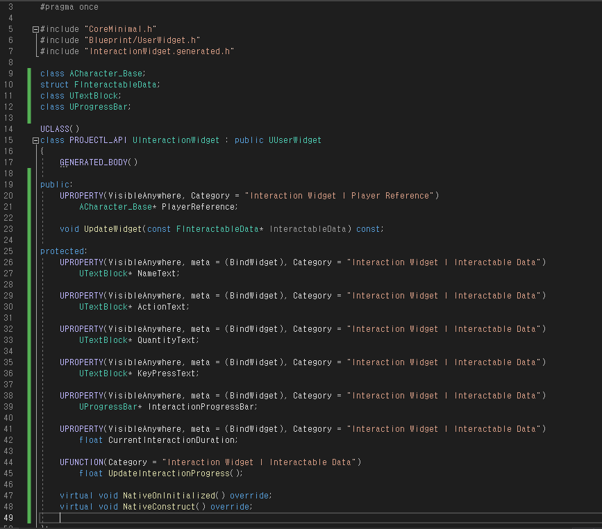 가상함수를 가져와 오버라이드 하는 경우 cpp파일의 함수에서 UInteractionWidget을 UWidget으로 바꿔서 빌드해준 뒤