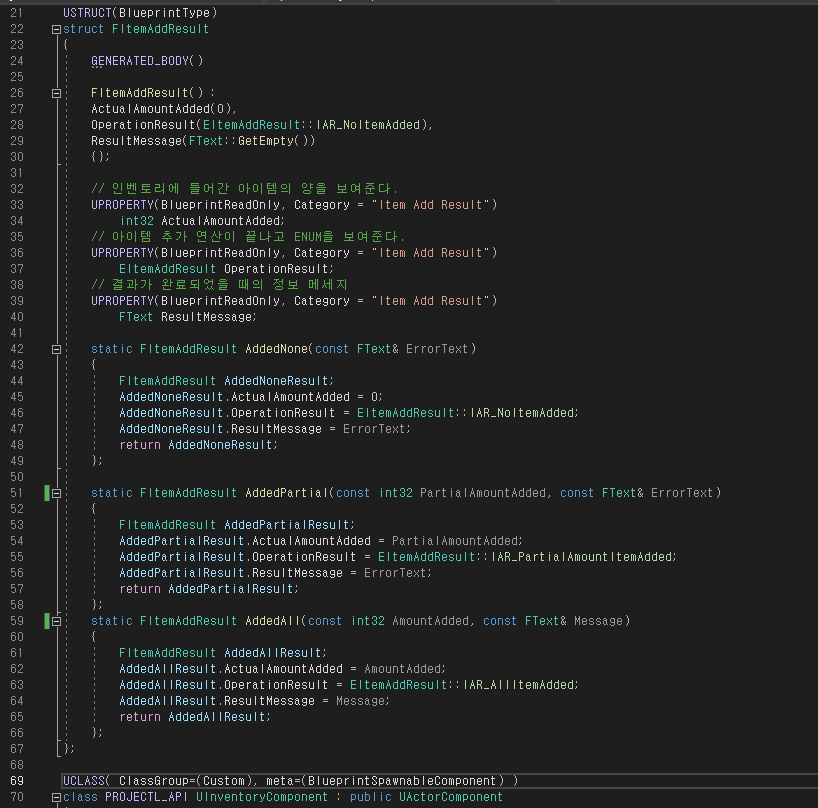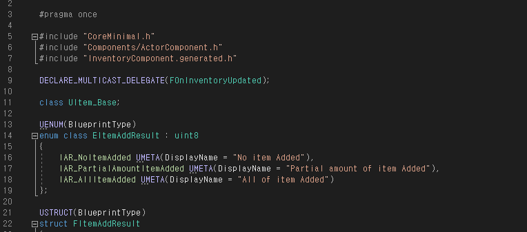 먼저 언리얼에서 일반 C++파일을 생성한 뒤 데이터 구조를 제작하였다.
