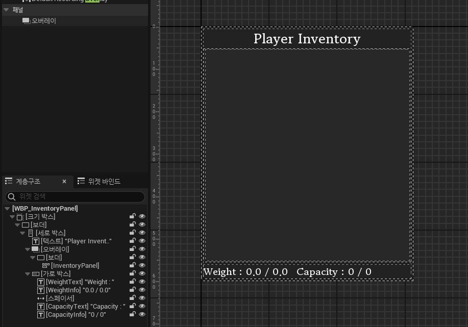 InventoryPanel은 인벤토리에 들어있는 아이템을 랩박스인 InventoryPanel에 띄우고 무게와 아이템 슬롯의 수치를 알려준다.