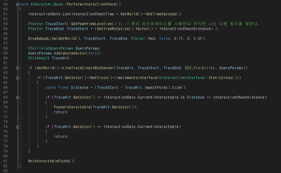 라인트레이스를 이용해 폰이 바라보는 방향의 아이템이 있는지 확인한다.