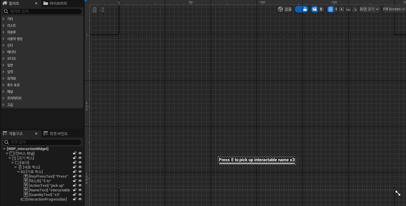 InteractionWidget을 상속받아 블루프린트에서 위젯을 제작했다.