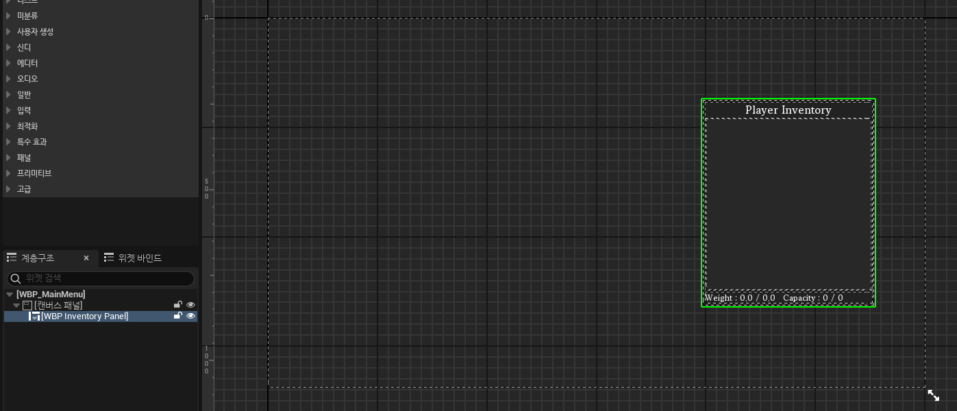 메인 메뉴 위젯은 다음에 등장할 InventoryPanel을 탑재할 위젯이다.