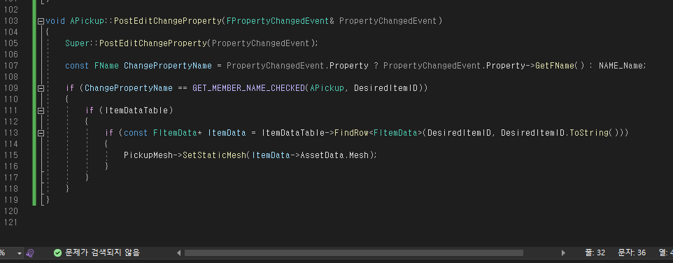 엔진에서 데이터 테이블에 설정한 각 아이템 별 아이디를 사용할 Pickup의 DesiredItemID에 입력해 ItemReference를 생성해준다.