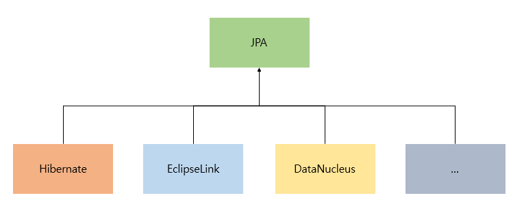 인터페이스 이기 때문에 Hibernate, OpenJPA 등이 JPA의 구현체입니다.