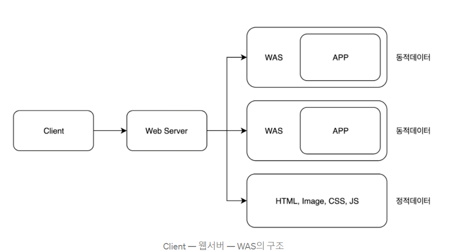 따라서 client에게 요청과 응답을 수행하는 부분만 남기고, 동적인 콘텐츠를 WAS로 분리하게 되었다.