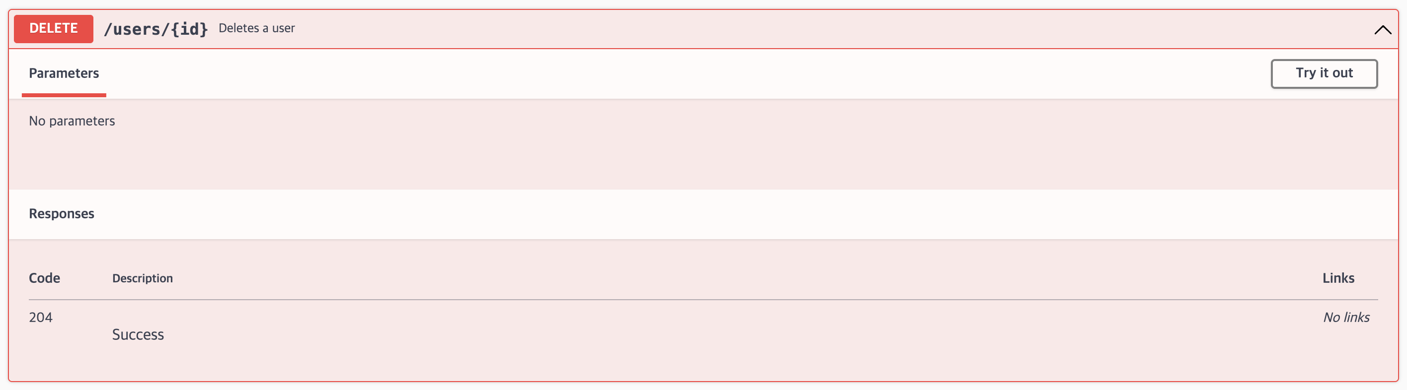 reqres.in API 문서를 보면, DELETE /api/users/{id} 요청이 성공했는지 여부는 응답 status 코드가 204인지로 판단하면 된다고 나와 있다.