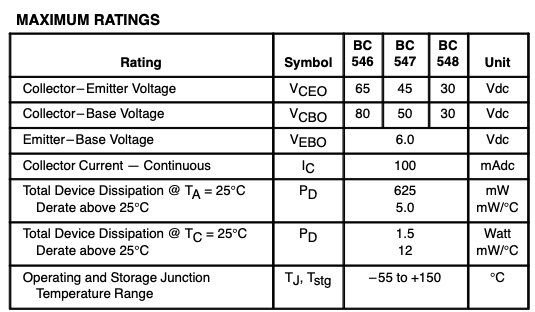 트랜지스터 데이터시트를 한번 살펴봅시다. (💻 출처: BC546 트랜지스터 데이터시트)