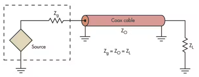 동축케이블의 특성 임피던스(50Ω/75Ω)가 신호원 및 부하와 일치하지 않으면 최대 전력 전송이 불가능하고, 반사파(Standing Wave)가 케이블에 형성됩니다.