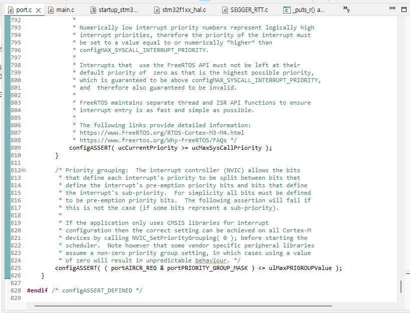 STM32에서 FreeRTOS와 Segger를 통합하려고 시도했을 때 configASSERT( ( portAIRCR_REG & portPRIORITY_GROUP_MASK ) <= ulMaxPRIGROUPValue ) 오류가 발생했습니다.
