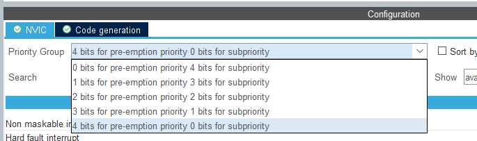 나는 우선순위 그룹을 "4 bits for pre-emption priority 0 bits for subpriority" 로 설정해놨다.