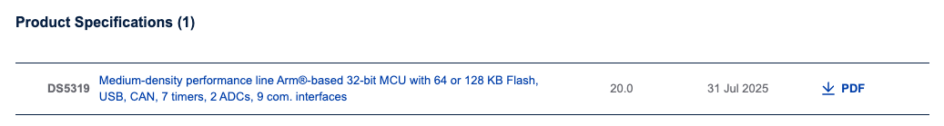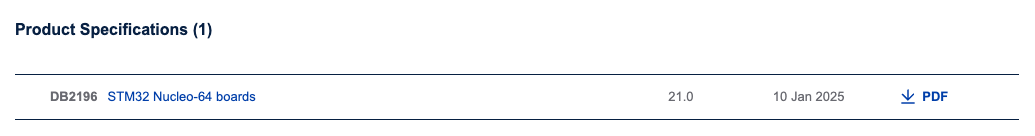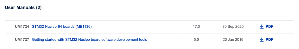ST 웹사이트에서 마이크로컨트롤러와 개발 보드와 관련된 몇 가지 문서를 다운로드해서 나중에 참고하면 좋습니다. 대표적으로는 데이터시트, 레퍼런스 메뉴얼, 회로도 등이 있습니다.