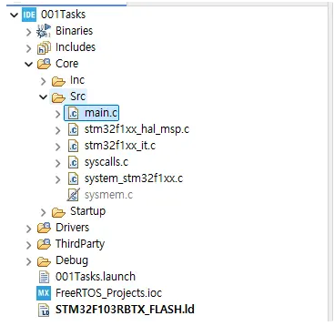 예를 들어 보겠습니다. STM32CubeMX에서 생성된 파일은 이런식으로 되어있습니다.