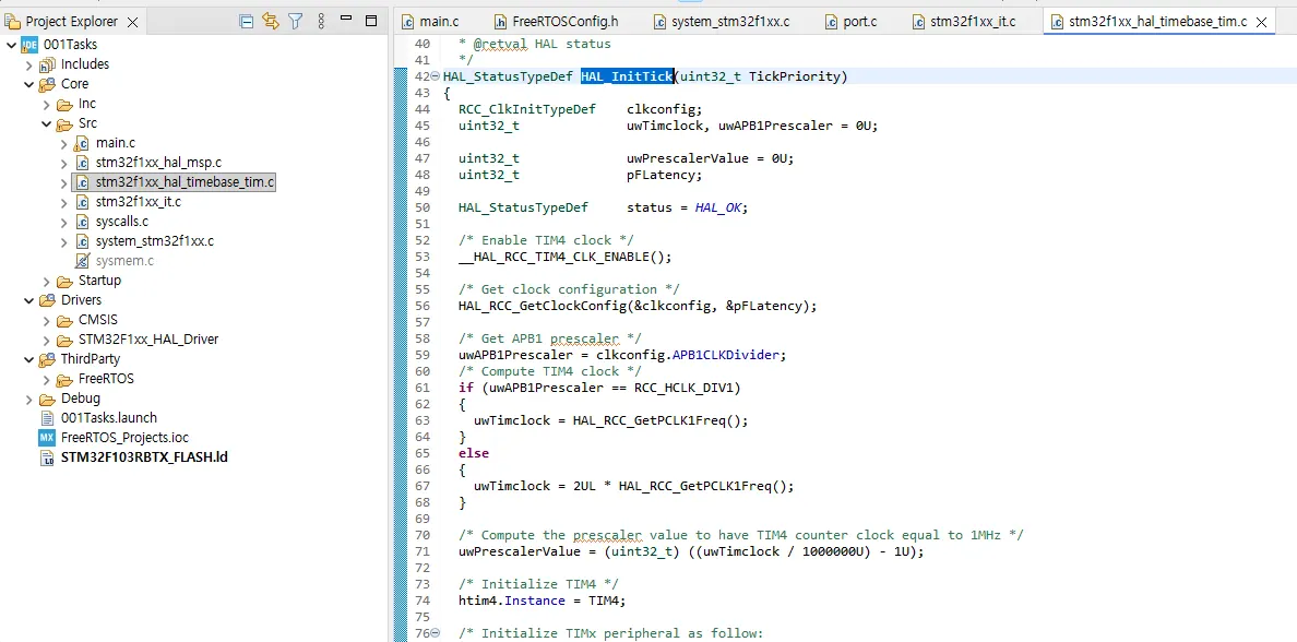 따라서 SysTick 타이머는 FreeRTOS 전용으로만 사용하고, STM32 Cube HAL 레이어의 경우 마이크로컨트롤러의 타이머 주변 장치 중 하나를 time base source로 사용할 수 있습니다.